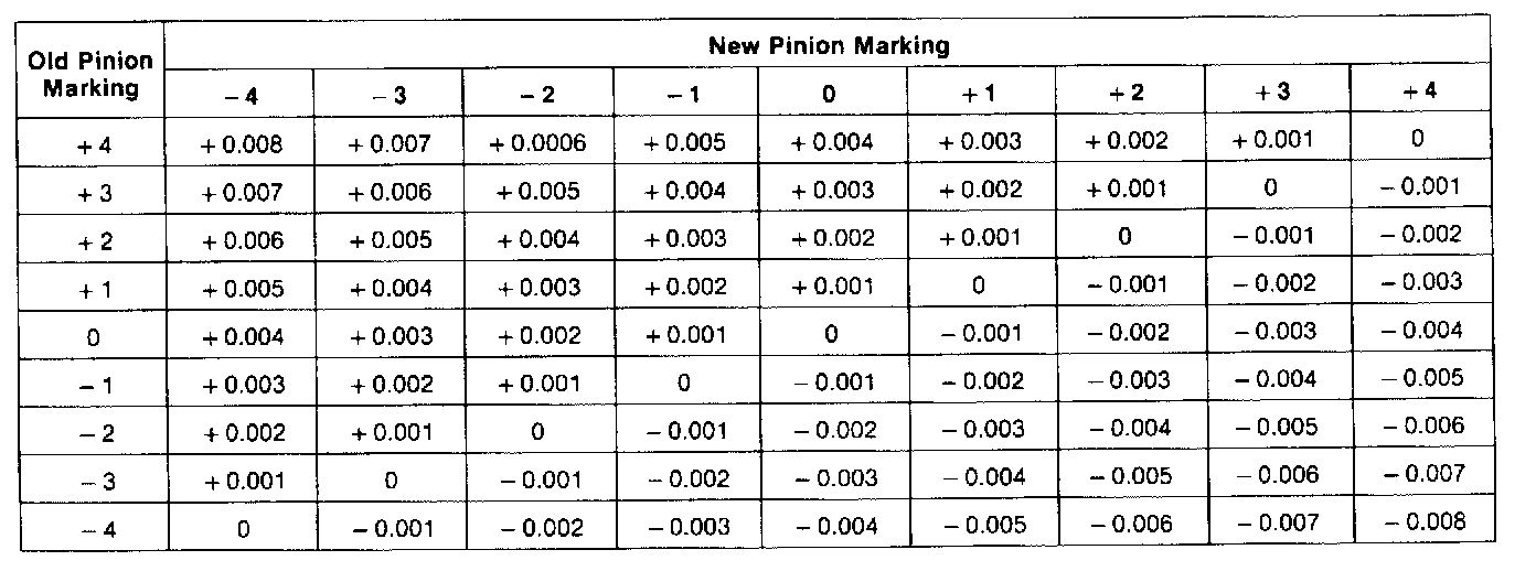 NOTE: The starter shim thickness must not be used as a final shim setting. An actual pinion depth measurement must be performed and the final shim thickness adjusted as necessary.