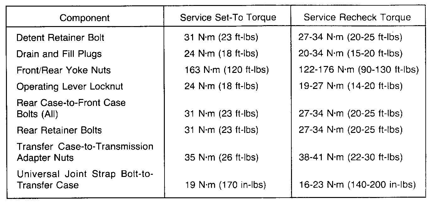 Torque Specifications: