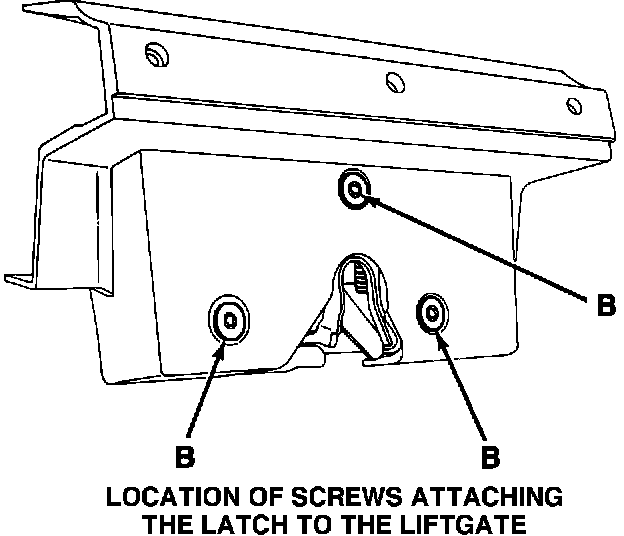 2. Remove the screws (B) attaching the latch to the liftgate.