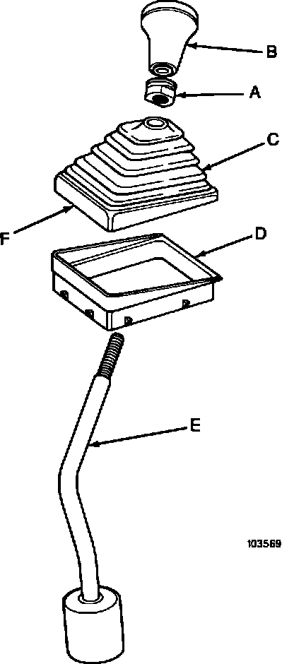 1. Loosen shift knob locknut (A) and remove the knob (B) and locknut from the lever.