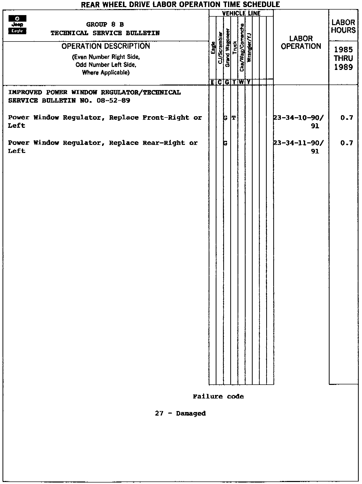 FAILURE CODE: 27 - Damaged