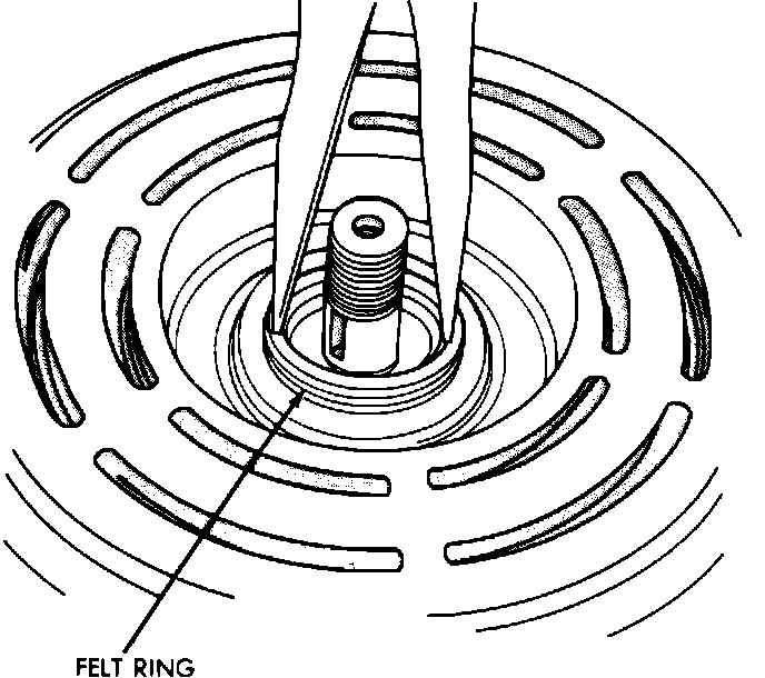 3. Using a suitable pair of snap ring pliers, insert the ends into the holes in the felt ring metal retainer and lift it out.