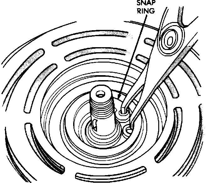7. Install seal retaining snap ring with beveled side outward and flat side toward the compressor.