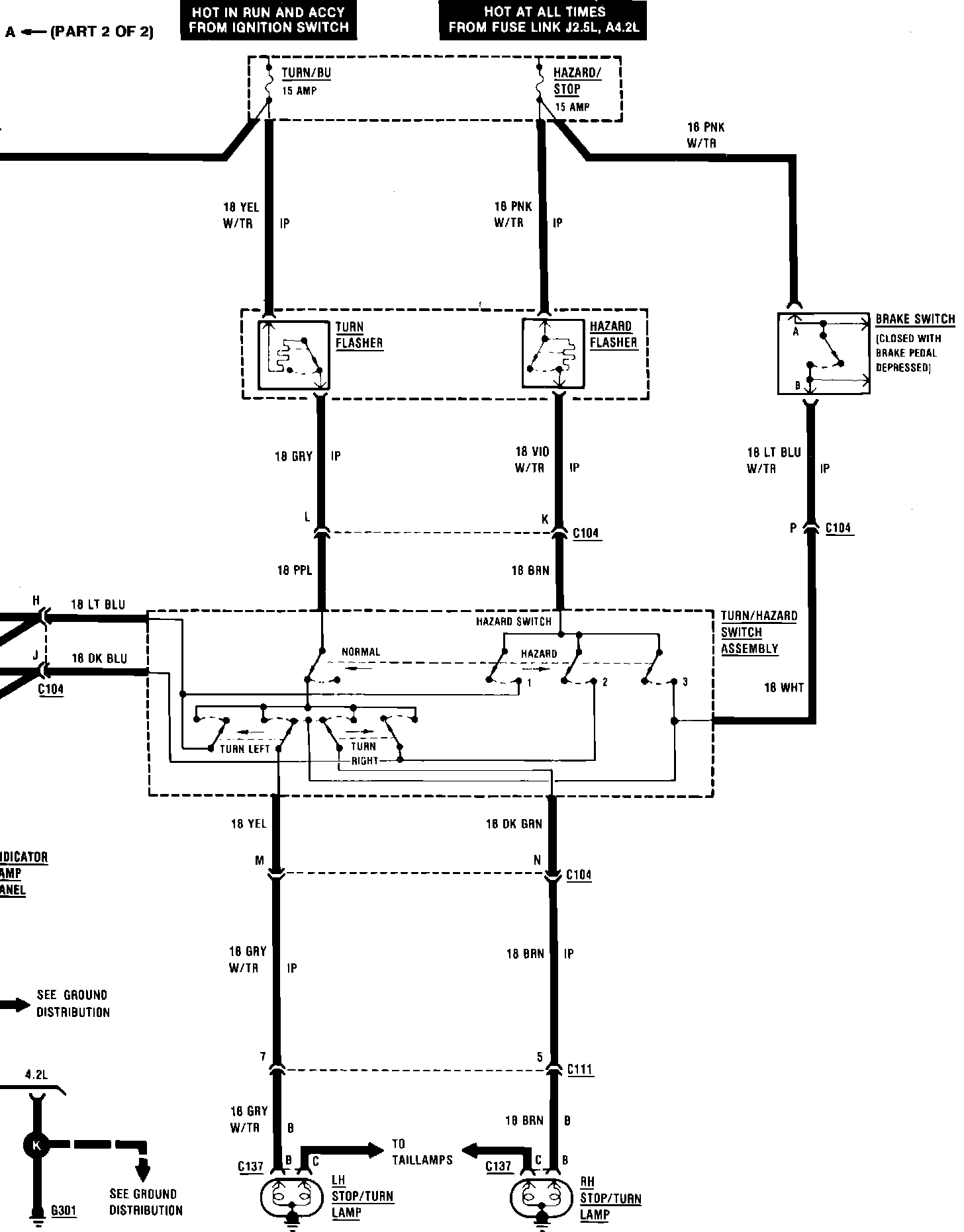 Fig. 2 Back-Up, Hazard, Stop & Turn Signal Lamp Wiring Circuit (Part 2 of 2):
