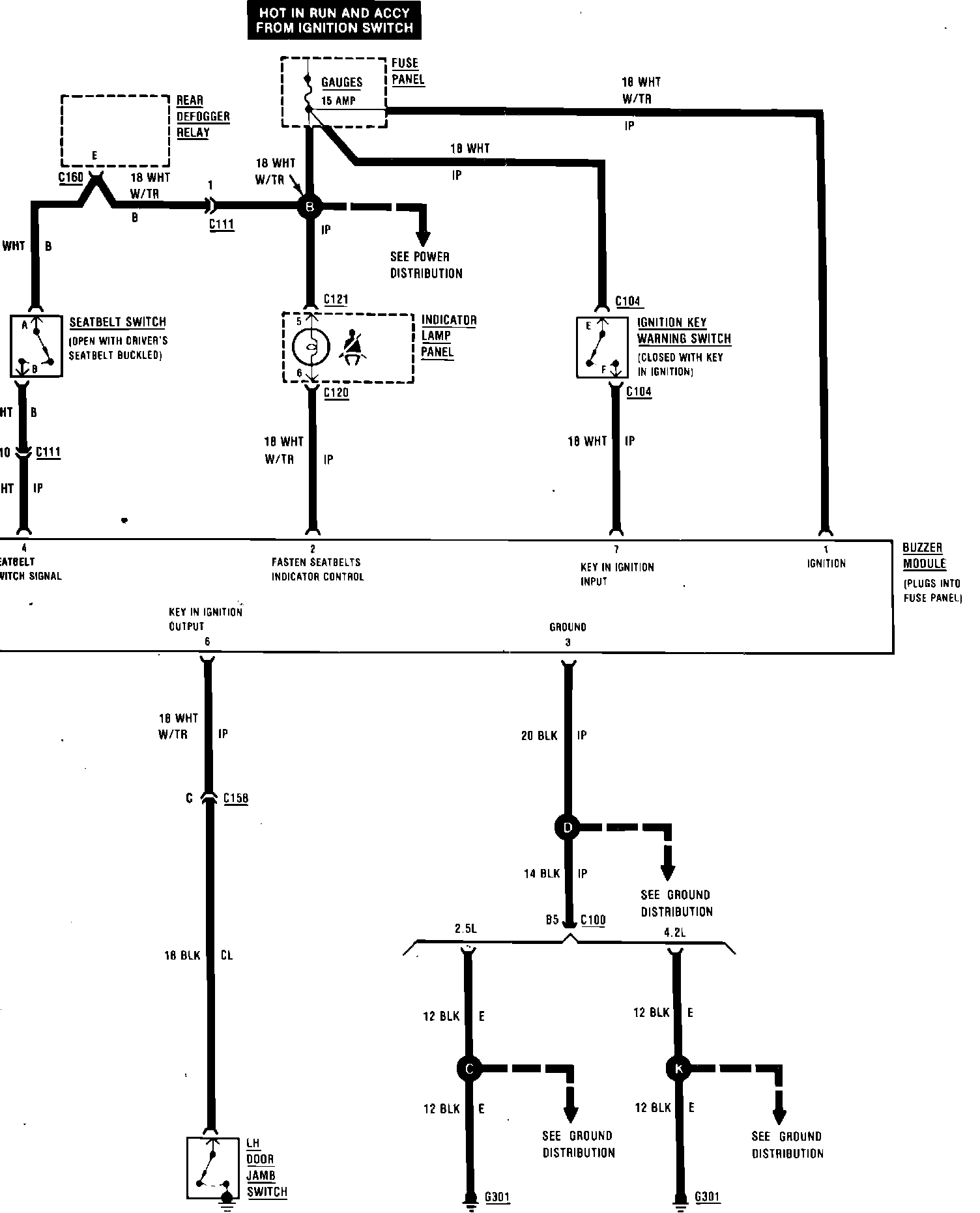 Fig. 14 Ignition Key & Seatbelt Warning Wiring Circuit: