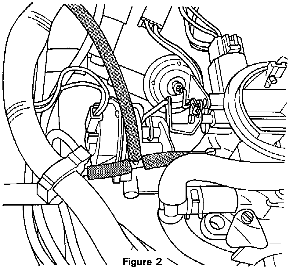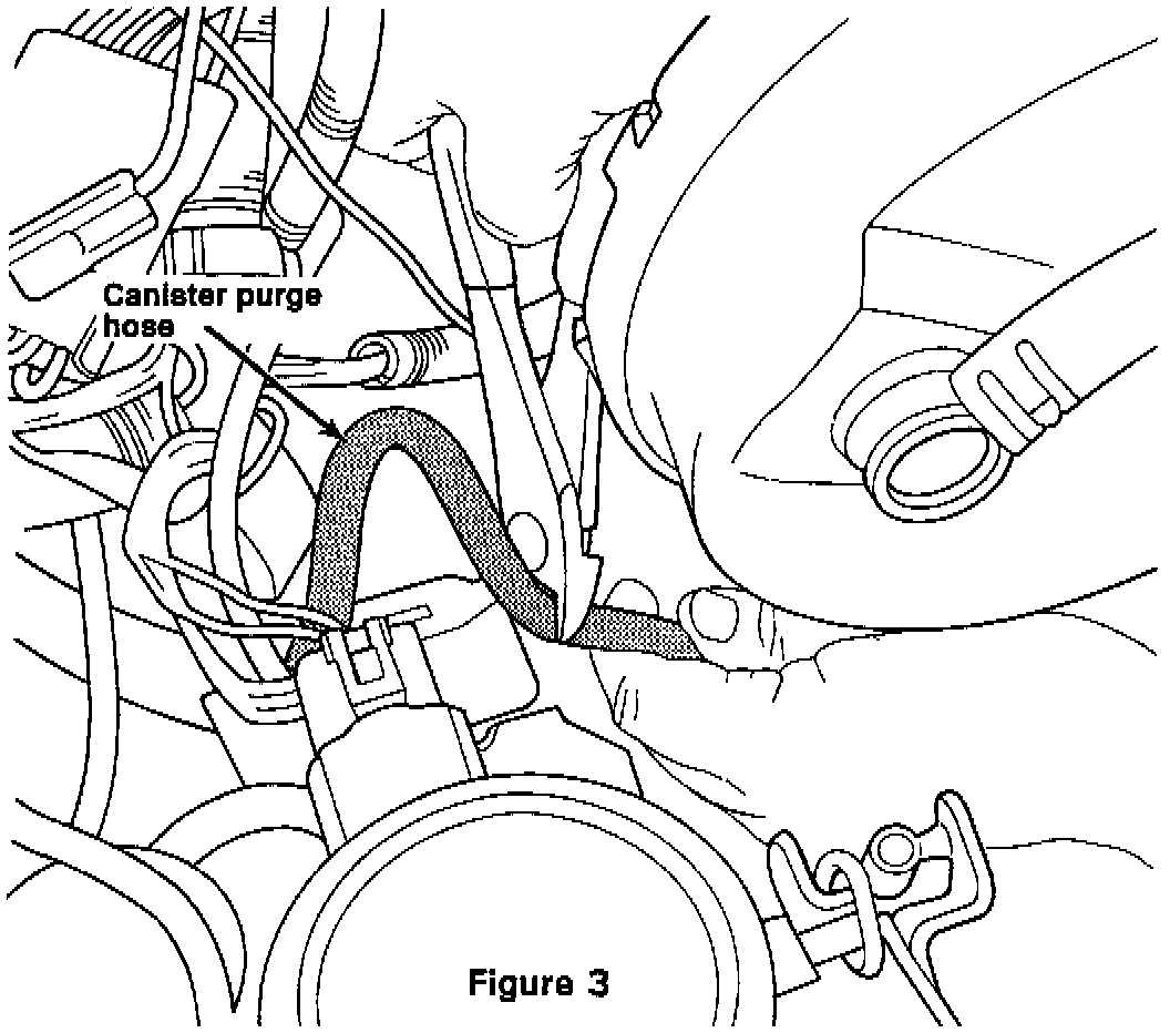 4. Cut the canister purge hose six inches from the tee at the rear of the carburetor (Figure 3).