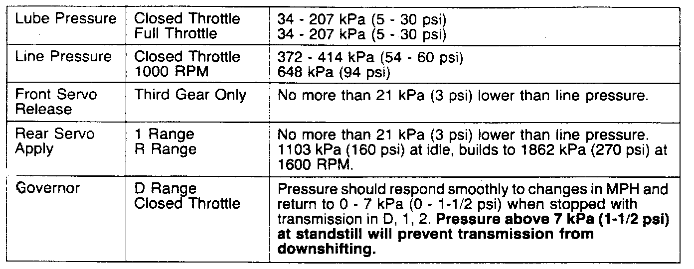 Hydraulic Pressure Test Specifications:
