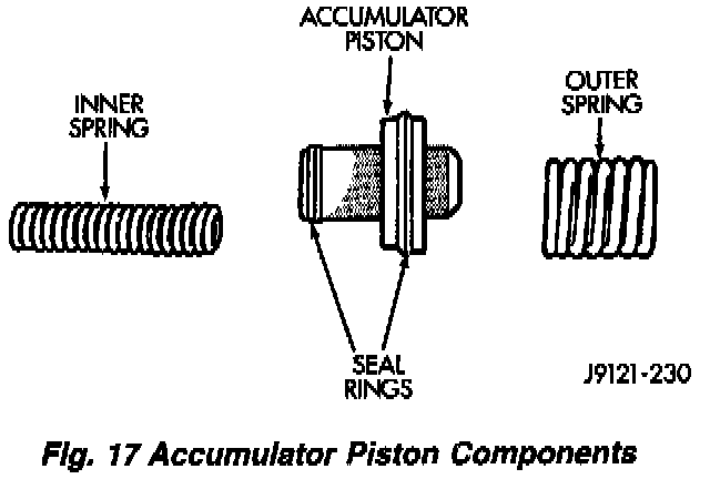 4. Check condition of seals on accumulator piston (Fig. 17). Install new piston seals if necessary.