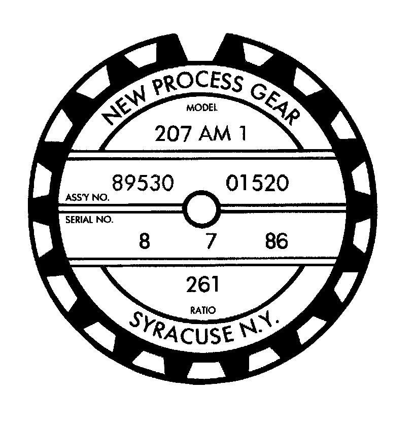 A circular, metal ID tag is attached to the rear case of each NP231 transfer case. The ID tag provides the transfer case model number, assembly number, serial number and low range ratio.
