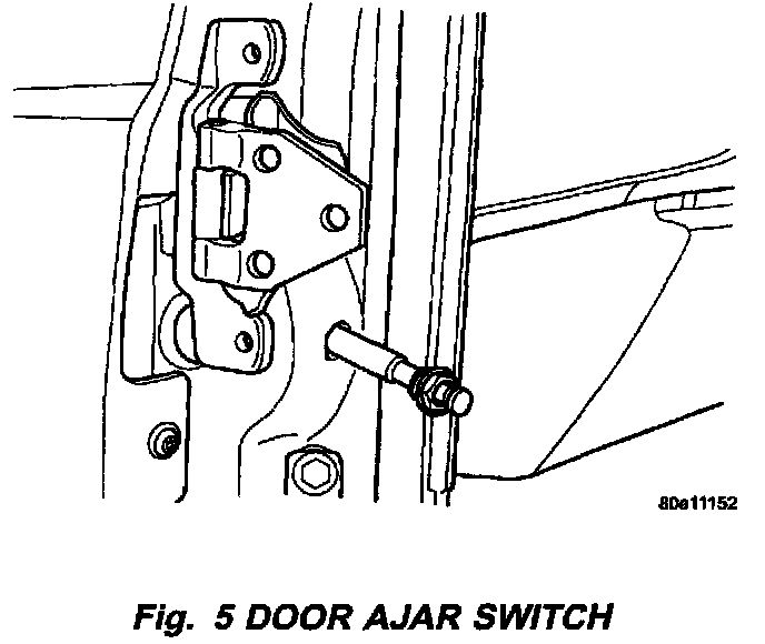 13. Remove the door ajar switch from the "A" pillar Locate the switch away from the area where drilling will take place. (Fig. 5)