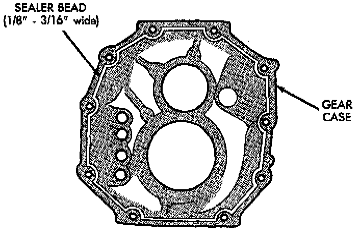 10. Apply a 1/8 to 3/16 inch wide bead of Threebond (R) Liquid Gasket TB1281, to sealing surface of adapter/extension housing, making sure to keep sealer bead to inside of bolt holes.