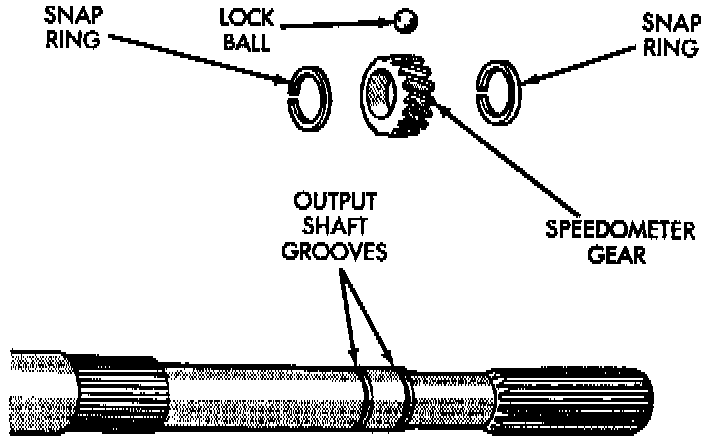 9. Install speedometer gear retaining snap-ring onto output shaft.