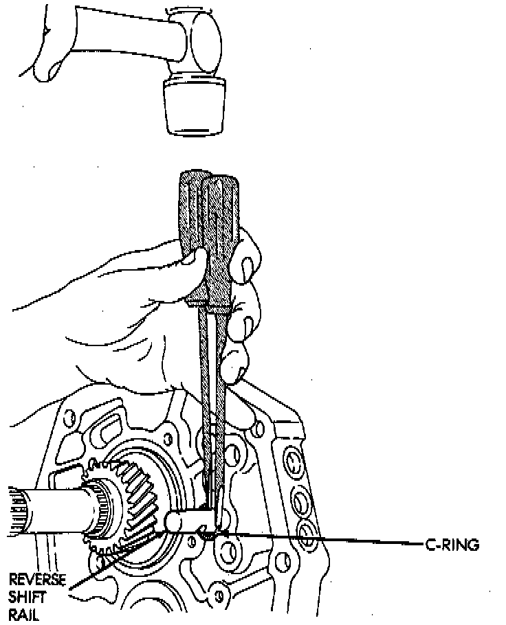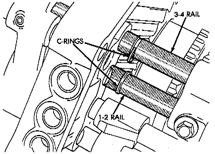 13. Install 1-2 and 3-4 shift rail C-rings.