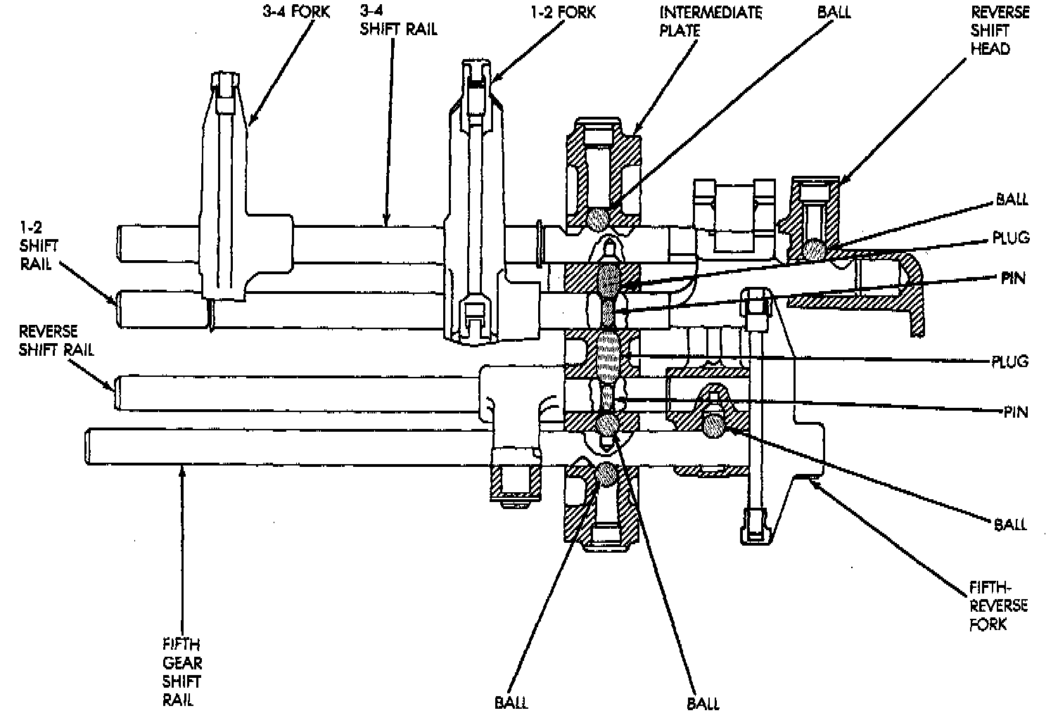^ The shift rail interlock pins, balls and plugs must be installed in the correct sequence for proper shifting. Refer to the installation diagram during assembly.