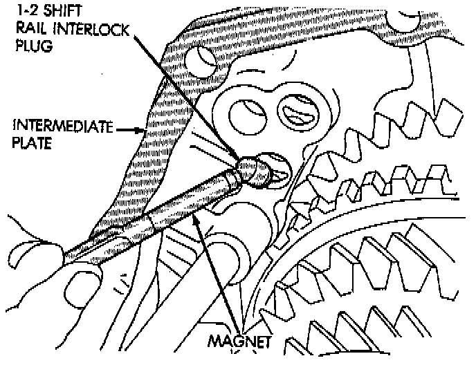 6. Coat 1-2 shift rail interlock plug with petroleum jelly and install it in intermediate plate bore.