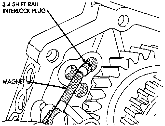 9. Coat 3-4 shift rail interlock plug with petroleum jelly and install plug in intermediate plate.