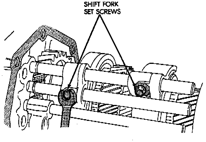 12. Install and tighten shift fork setscrews to 20 Nm (14 ft. lbs.) torque.