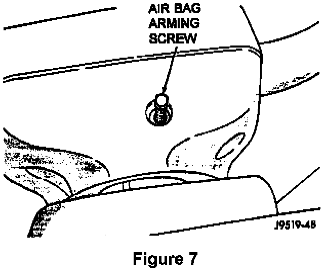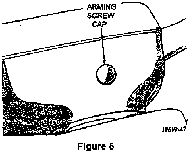 C. From outside the vehicle, reach through the driver's window and rotate the arming screw counter-clockwise. Do NOT use power driven tools! Back the screw off until the head is about one inch above the surface of the steering wheel back cover (Figs. 6 and 7).
