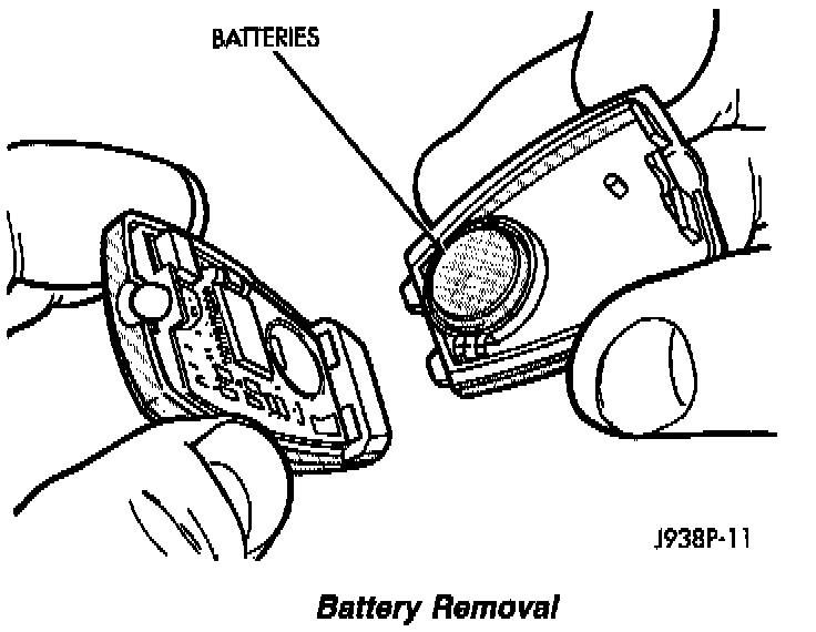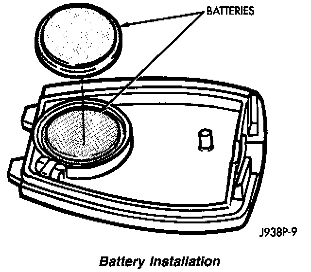 (3) Install the new CR 1616 batteries. Be sure the batteries are installed according to polarity as shown on the transmitter battery receptacles.