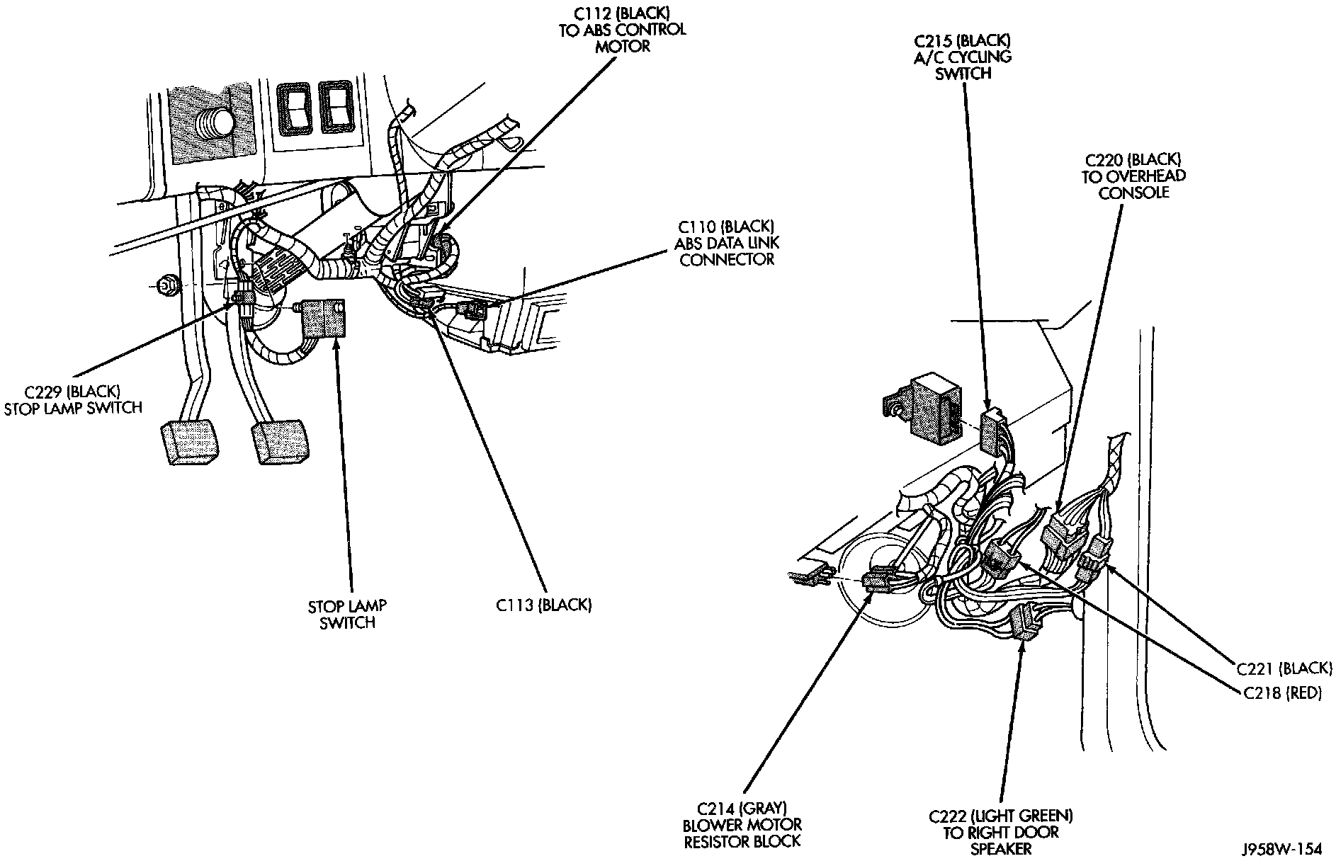 Stop Lamp Switch, Blower Motor And ABS Control Module Wiring Connector: