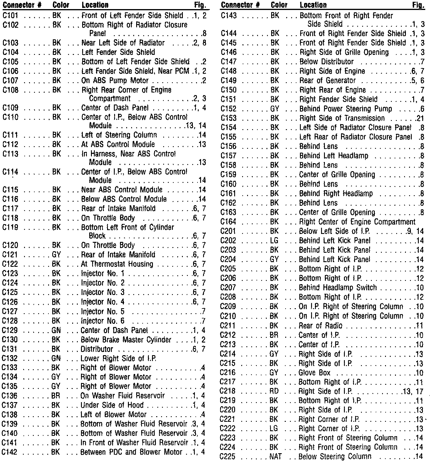 Connector Locations Diagram Index (Part 1 Of 3):