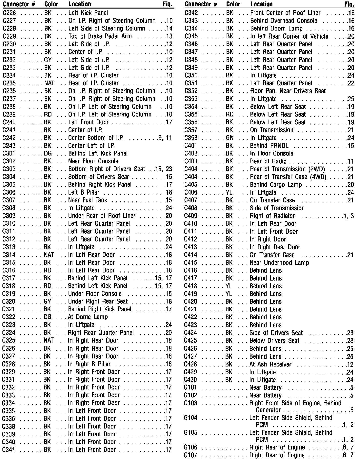 Connector Locations Diagram Index (Part 2 Of 3):