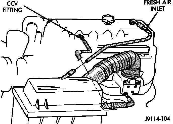 8. Verify that Crankcase Ventilation (CCV) fresh air hose is firmly connected to cylinder head and air cleaner covers.