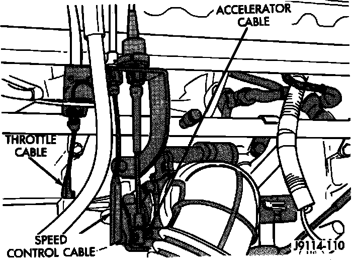 13. Inspect accelerator cable, transmission throttle cable (if equipped) and cruise control cable connections (if equipped). Check their connections to the throttle arm of throttle body for any binding or restrictions.