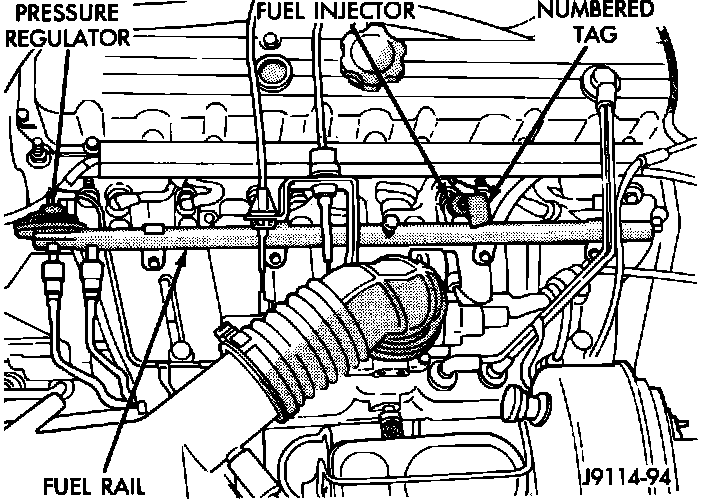 21. Verify that fuel injector wire harness connectors are firmly connected to the fuel injectors in the correct order. Each harness connector is tagged with the number of its corresponding fuel injector.