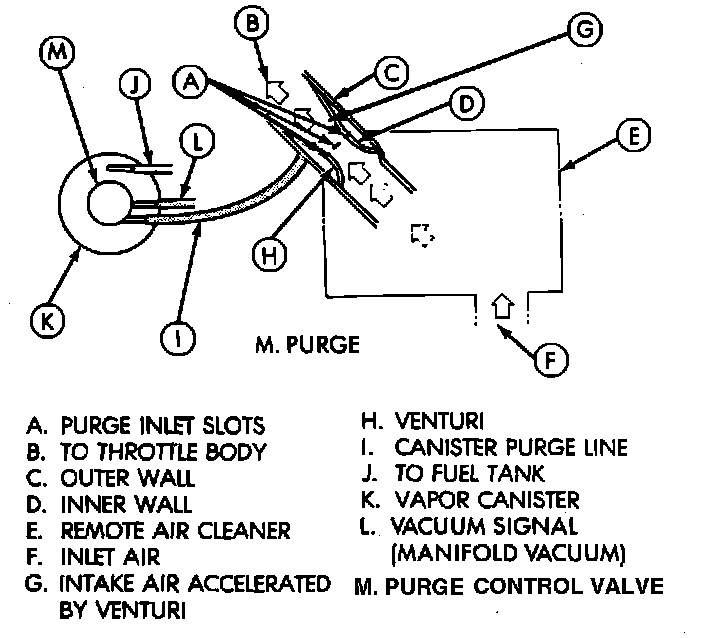 The system consists of a non-vented fuel tank, a special Fuel Filler Cap, Charcoal Canister, Rollover / Pressure Relief Valve, Purge Control Valve, Air Cleaner Venturi, and hoses necessary to connect these components together.