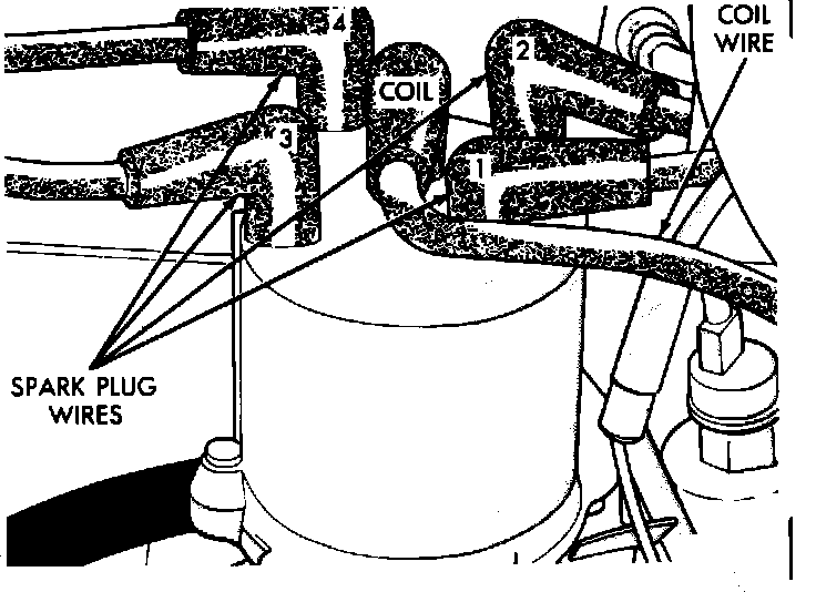 1. Unfasten the distributor cap retaining screws. Remove the distributor cap with the coil and spark plug wires connected and position aside.