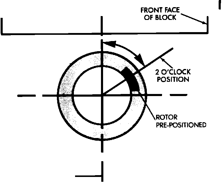 6. With the distributor cap removed, install the distributor with the rotor located just past the the 2 o'clock position.