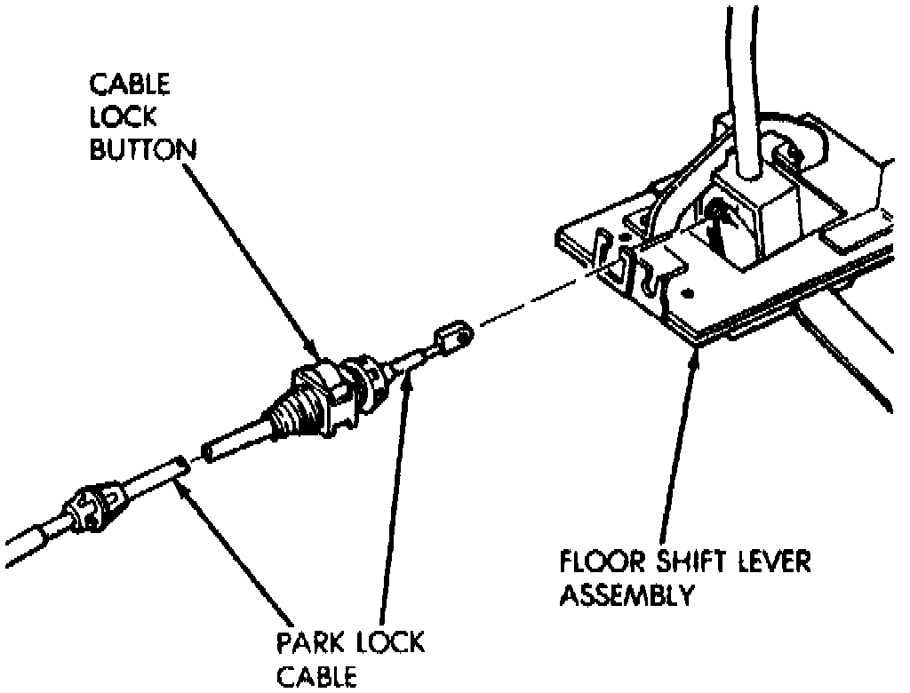 4. Check movement of shift release handle button or shift release lever. No movement should be possible until ignition is in the On position. Place shift lever into the Neutral position. If adjustment is correct, ignition lock cylinder will not be able to be placed in the Lock position when transmission shift lever is in Neutral or Drive. With transmission in the Park position, ignition lock cylinder should turn freely.