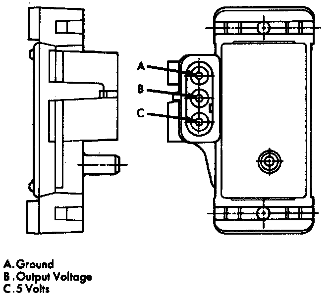 2. Test the MAP sensor output voltage at the MAP sensor connector terminal B (as marked on the sensor body).
