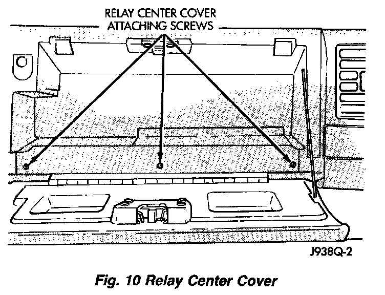 Open glove box and remove 3 screws holding relay center cover.