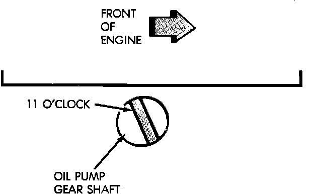 1. If necessary, using a flat blade screwdriver, turn the oil pump gear shaft until the slot is slightly past the 11 o'clock position.