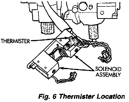 The thermistor is mounted on the solenoid assembly fig.6. It is immersed in transmission fluid at all times.
