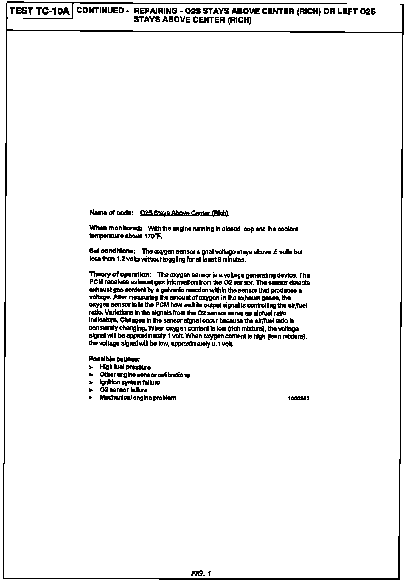 TC-10A O2 Sensor/Left O2 Sensor Above Center (Rich)