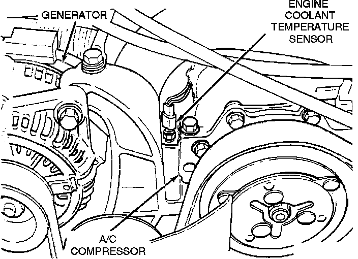 The engine coolant temperature sensor threads into intake manifold, next to the thermostat housing.