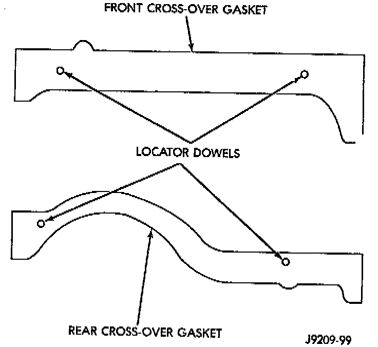 4. Install the front and rear cross-over gaskets onto the dowels.
