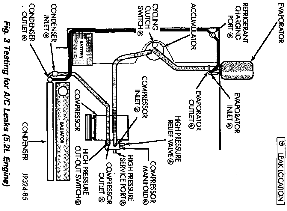 Fig.3 Testing For A/C Leaks (5.2L Engine):