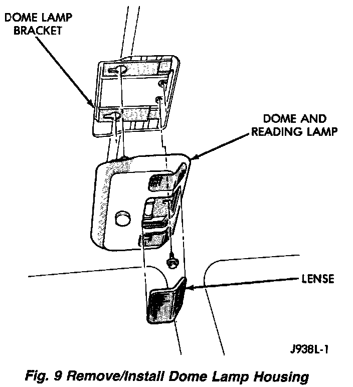(1) Remove 1 screw attaching the dome lamp housing to the roof.