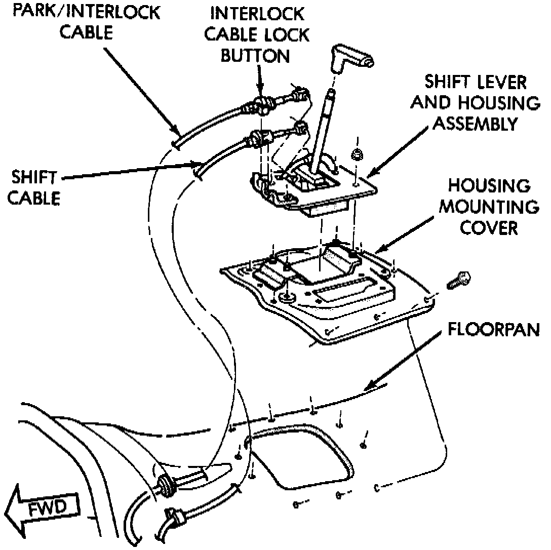 1. Shift transmission into Park, then place ignition switch in Accessory position.Fig. 8 Park Interlock Cable: