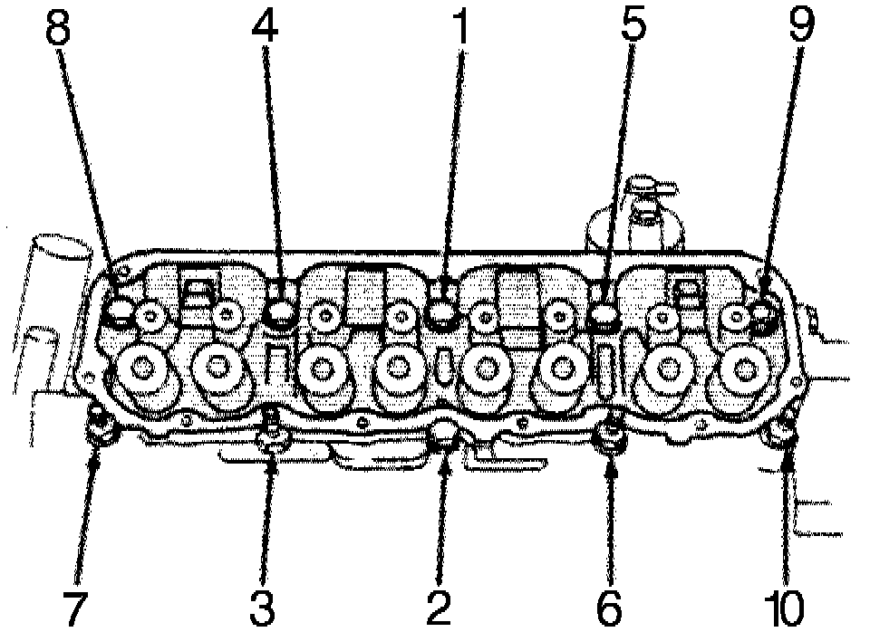 9. Tighten head bolts in sequence shown in Fig.4, as follows: