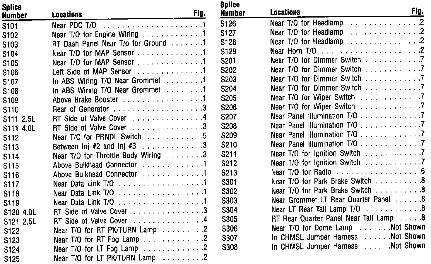 Splice Locations Diagram Index: