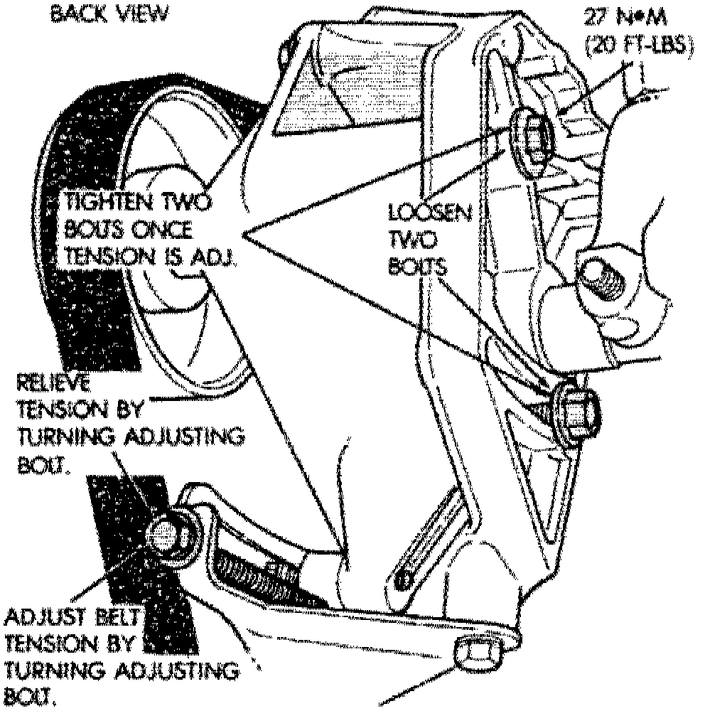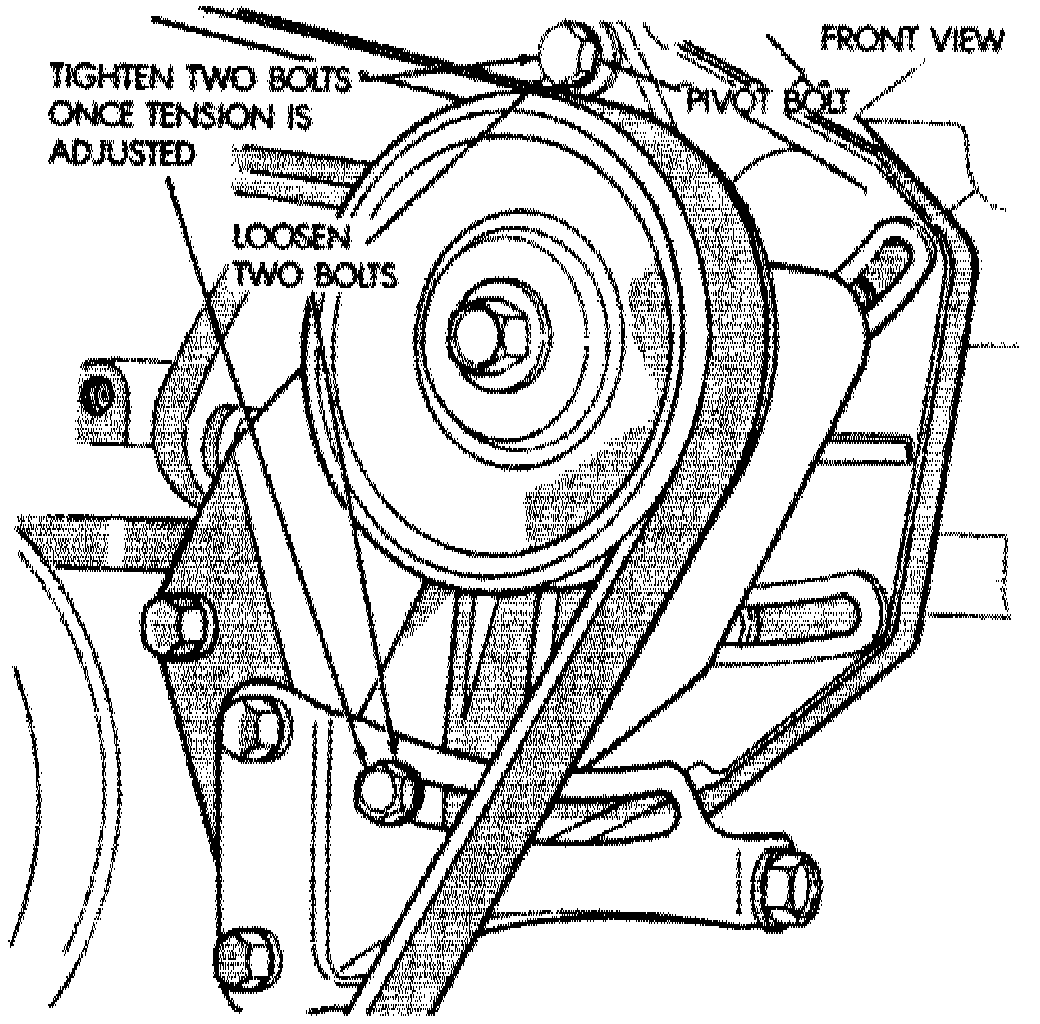 Belt tension is adjusted at the power steering pump or idler pulley if not equipped with power steering.1. Disconnect battery ground cable.