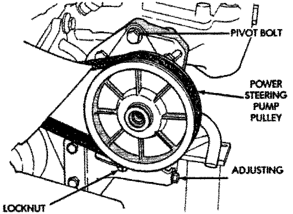 3. Loosen power steering pump pivot bolt and locknut.