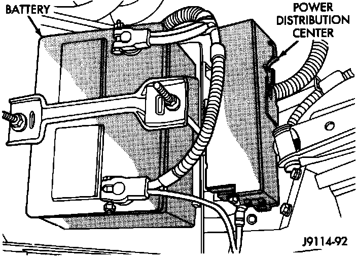 3. Inspect fuel pump relay and air conditioning compressor clutch relay (if equipped). Inspect ballast bypass relay, ASD relay, and radiator fan relay (if equipped) connections. Inspect starter motor relay connections. Inspect relays for signs of physical damage and corrosion. The relays are installed in the Power Distribution Center.
