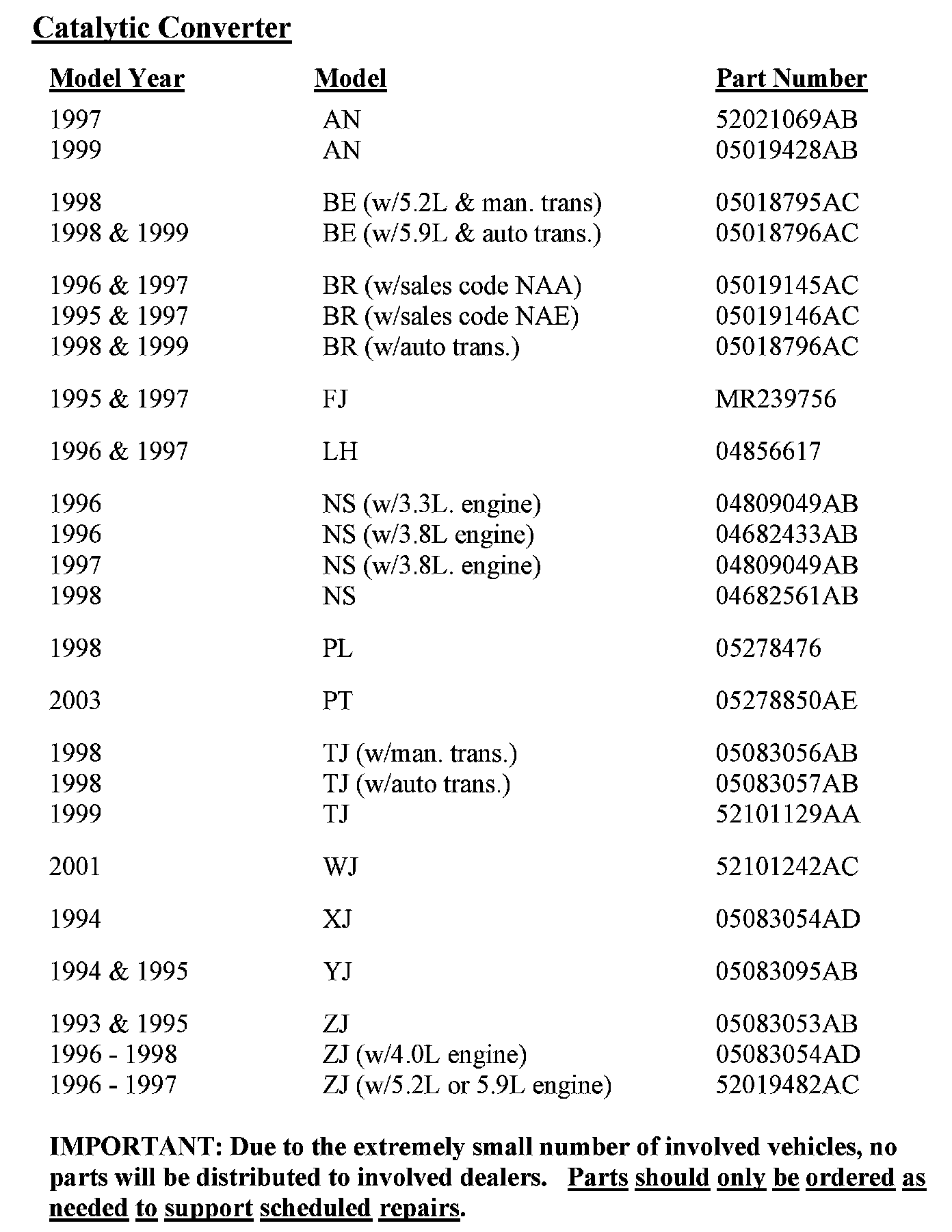 This recall applies only to the above vehicles that had a Mopar Value Line catalytic converter installed.