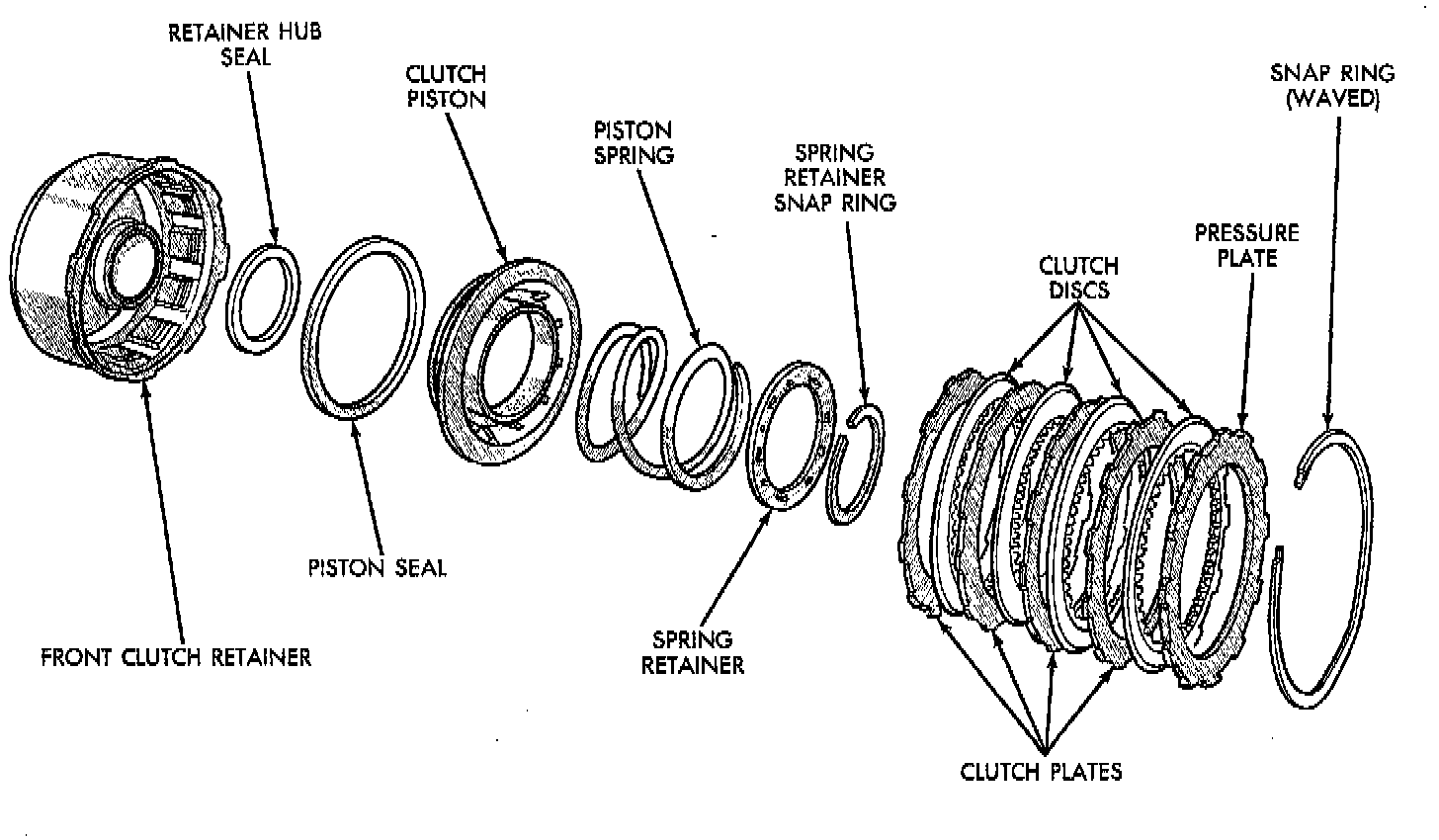 1. Remove waved snap ring and remove pressure plate, clutch plates and clutch discs.